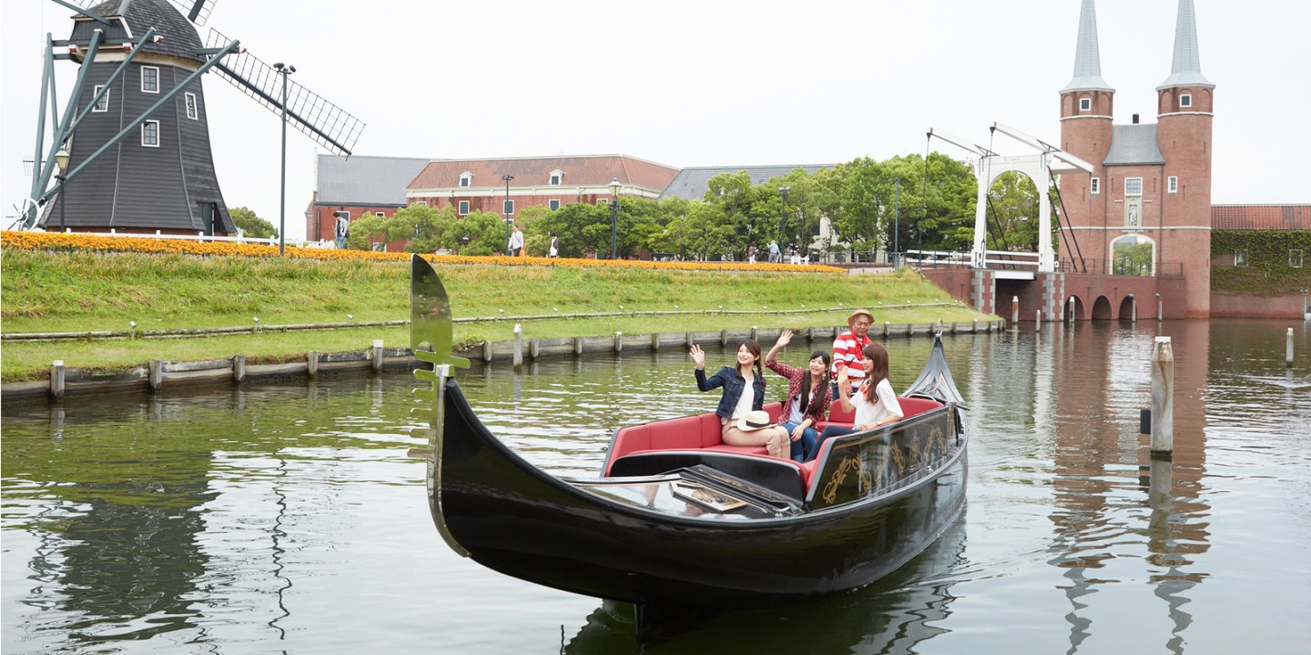 如同黑珍珠般的貢多拉船在運河上滑行般前進的樣子,正符合“遊覽”這個詞。從船上觀看風車和季節性鮮花交織的寧靜景觀和歐洲般的城市景觀,您一定會感覺像是在海外旅行。