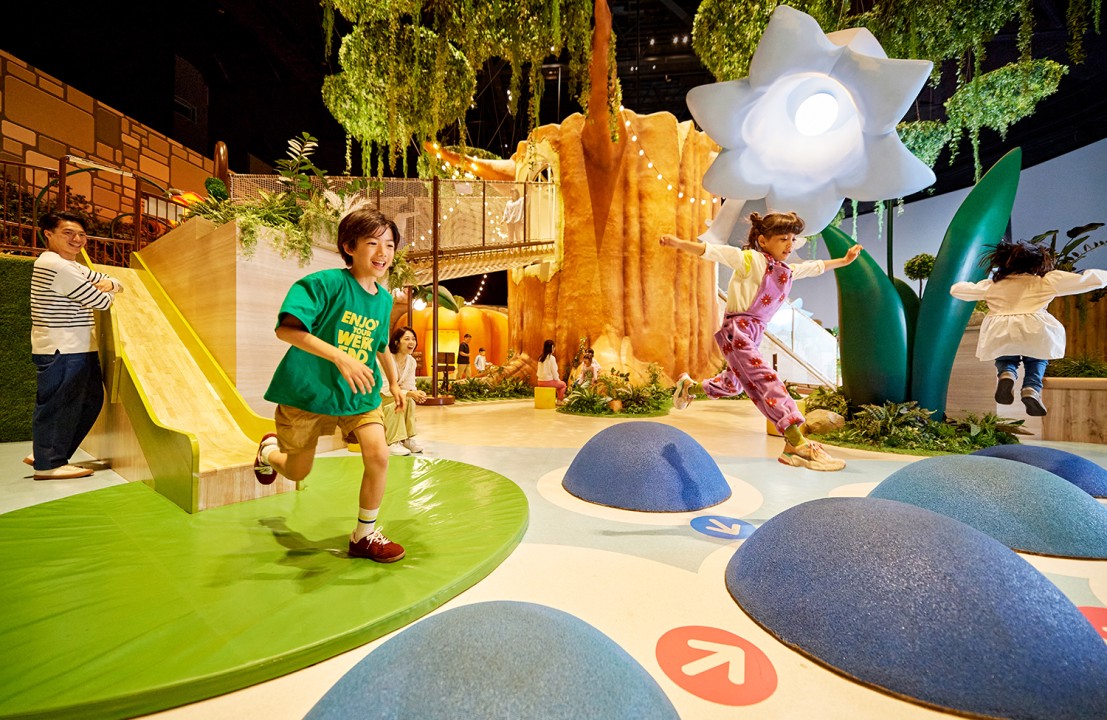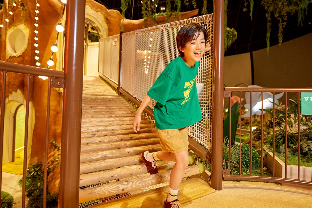 巨大的森林中有繩網和球秋千、蹦床和滑梯等,聚集了很多玩具的面向兒童的室內體育運動設施。從踏入的瞬間起,簡直就像圖畫書一樣的世界蔓延開來,可以以小矮人的心情玩耍。也有為嬰幼兒所設的區域,所以小孩子也可以放心地遊玩。