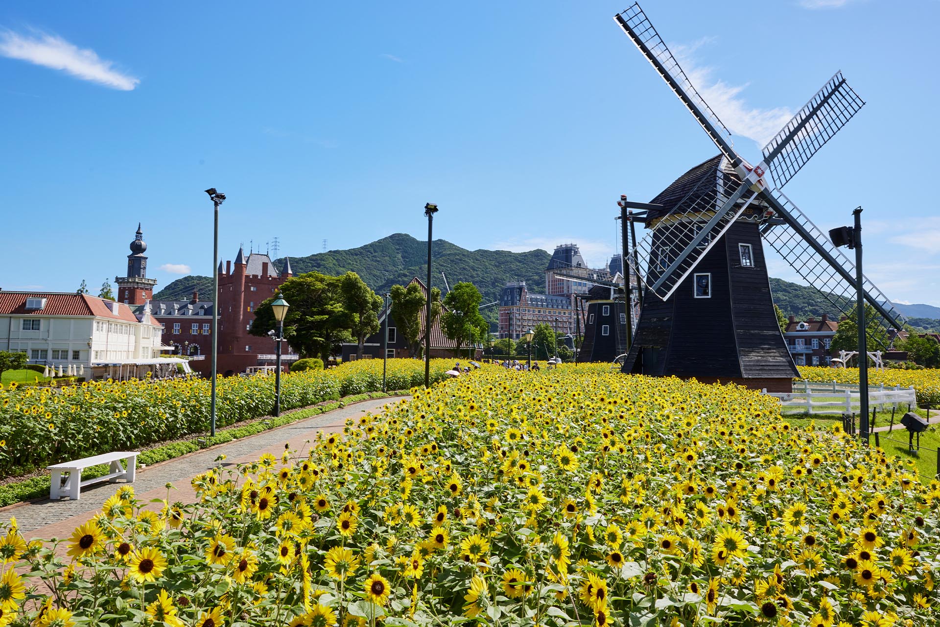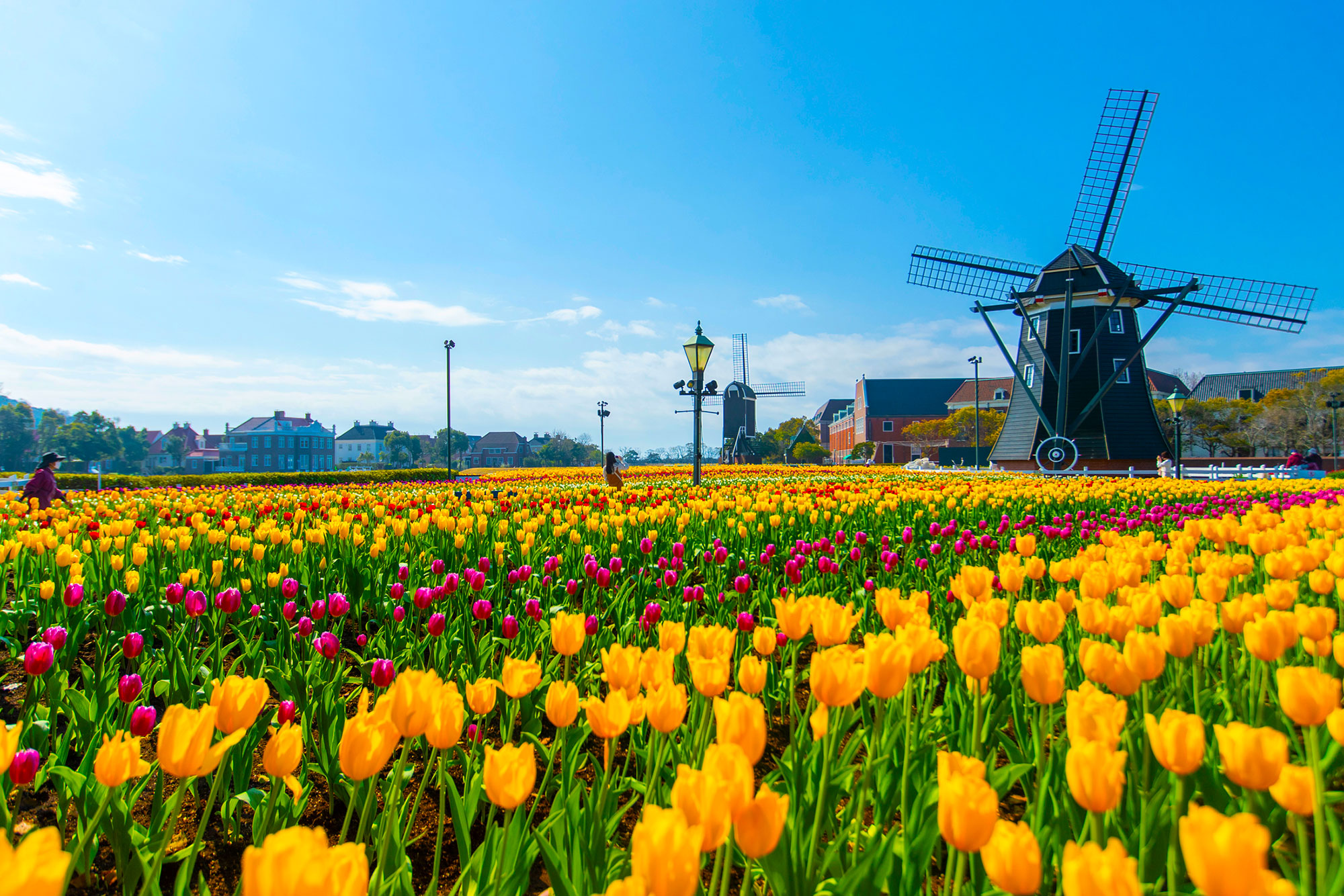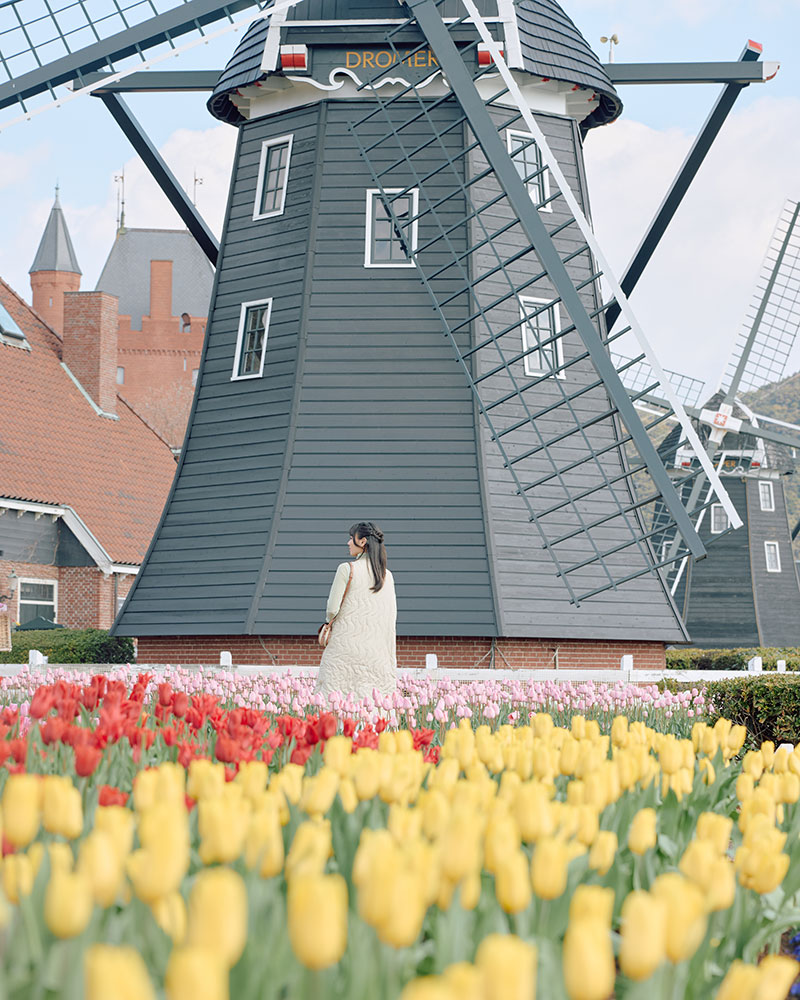 街の中を歩くほど、写真に残したくなるフォトジェニックな風景がどこまでも。一面に広がるチューリップ畑と異国情緒あふれる風車。青空とカラフルな色彩が織りなす鮮やかなコントラスト。目だけでなく、きっと心まで奪われます。
