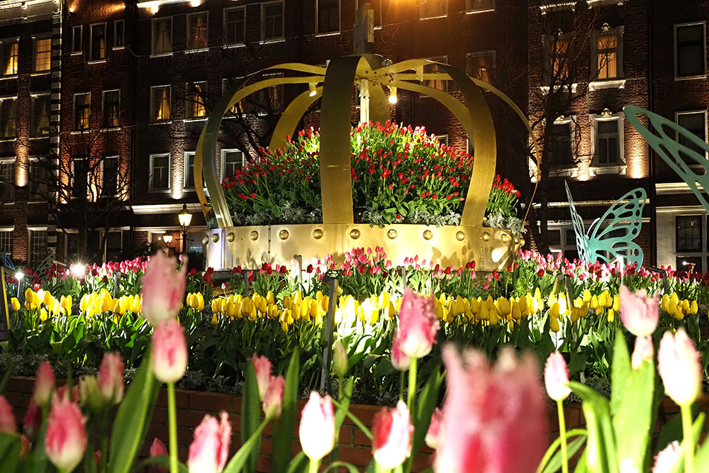 チューリップやバラをはじめ、色とりどりの春の景色が街並みを彩ります。