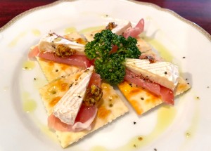 生火腿和卡芒貝爾奶酪的法式開胃菜