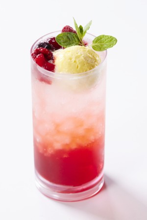 草莓、蘇打水和香草帶有草莓清爽甜味的飲料。(酒精或非酒精)