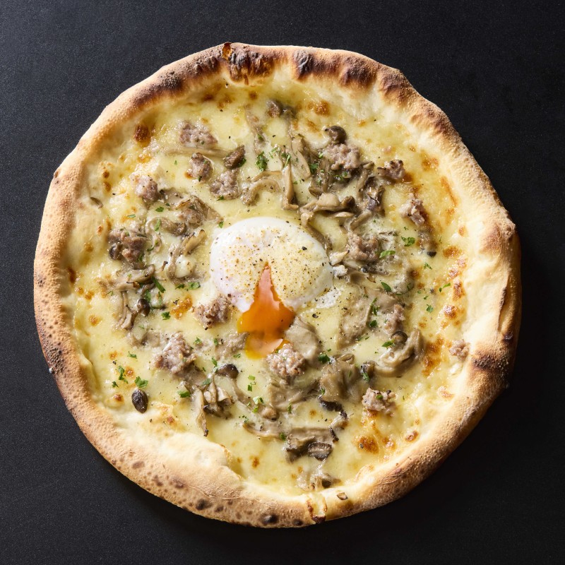 自家製パンチェッタとカリカリに揚げたポテトのボリューム満点のピザ!炒めて甘みを出した玉ねぎがよいアクセントに。 【アレルギー:小麦・卵・乳成分】