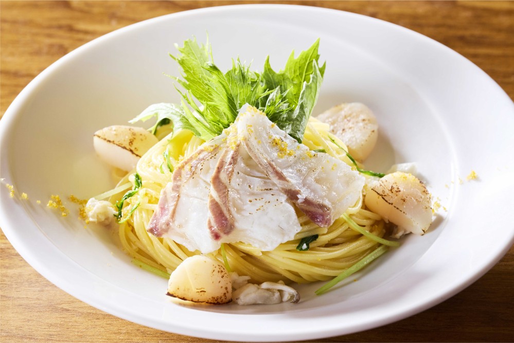 旨味たっぷりの昆布〆鯛をふんだんに使用したペペロンチーノ。 【アレルギー:小麦】