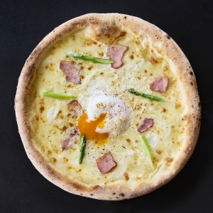使用長崎縣產的“野中之蛋”制作的俾斯麥披薩。請拌上粘稠的半熟雞蛋享用【過敏:小麥・乳成分・雞蛋】