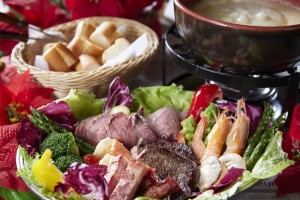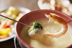 推薦的菜單是將長崎和牛牛肉,北海道扇貝和烤牛肉添加到流行的奶酪火鍋中。
