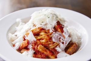 用馬蘇裡拉乳酪櫻桃和大量芝士烤制,最後澆上半冰沙司的熱騰騰的焗飯。