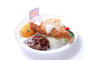 非常令人滿意的一盤炸蝦,漢堡牛排,雞肉飯和芝士蛋糕。