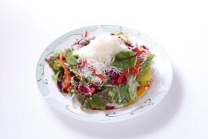 是將帕爾瑪幹酪削在前面的新鮮沙拉。