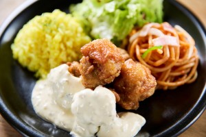 炸豬排、漢堡肉餅、炸蝦、姜黃飯、那不勒斯式面條拼盤的更上檔次的土耳其米飯。