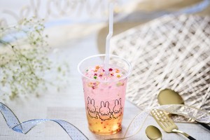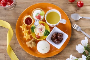 柔軟而奶油狀的煎蛋飯,上面裝飾著Miffy和Melanie在天空中玩耍的場景,還有燉牛肉和大塊的肉。