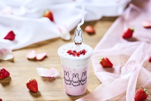 不會太甜的清爽的士多啤梨拿鐵。配菜的士多啤梨果肉是最好的搭配。