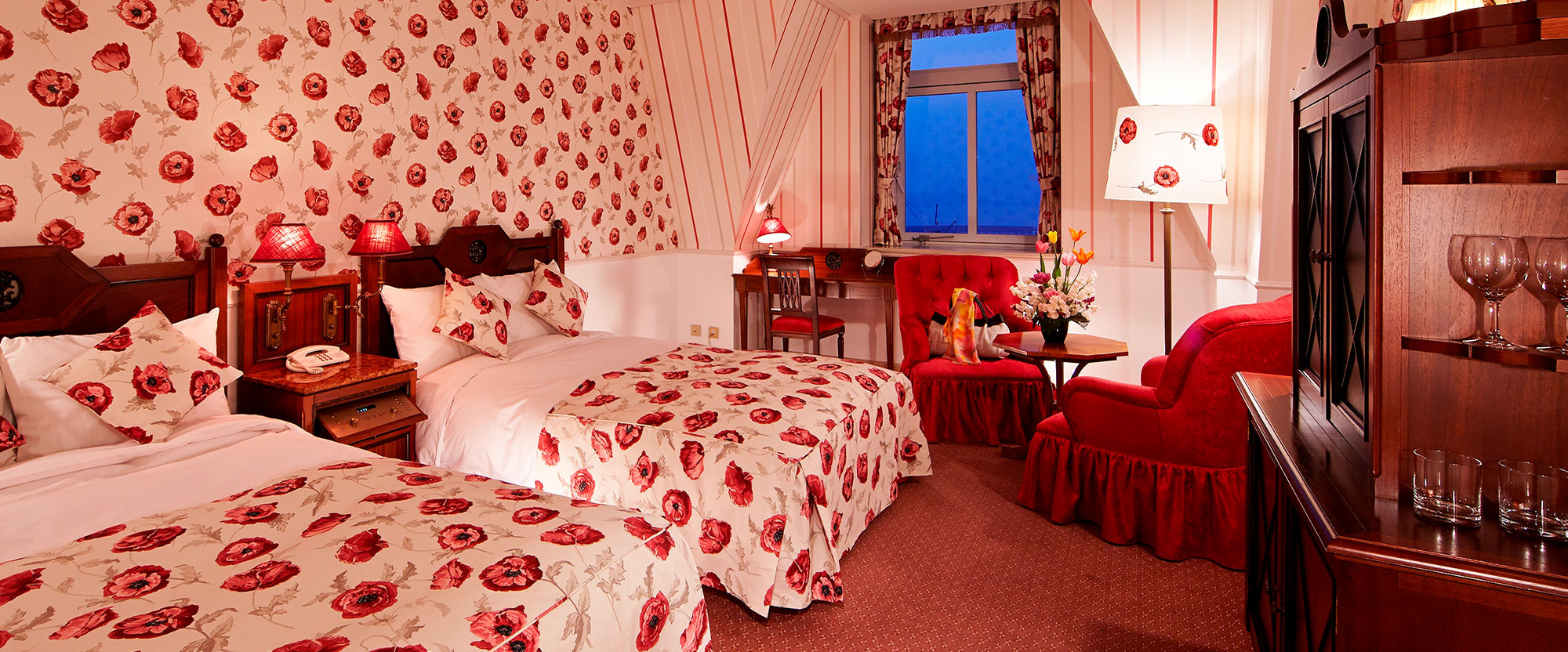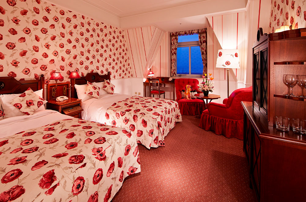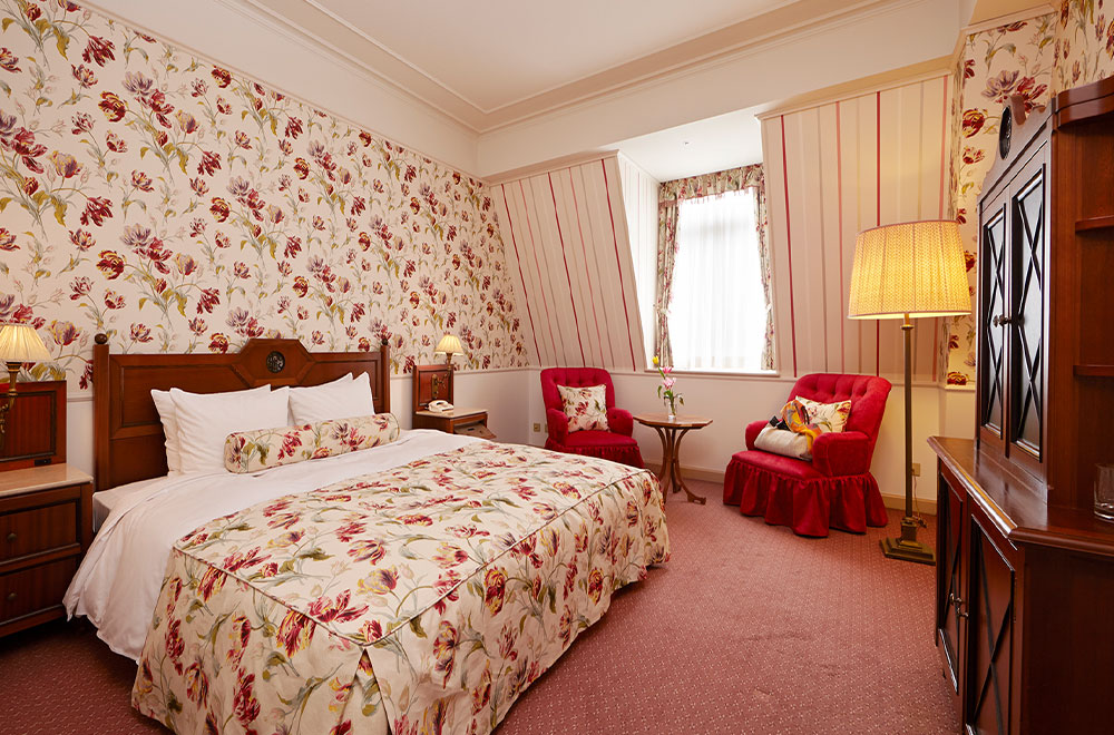 浪漫的客房周圍環繞著經典的英國花卉圖案。