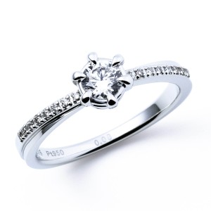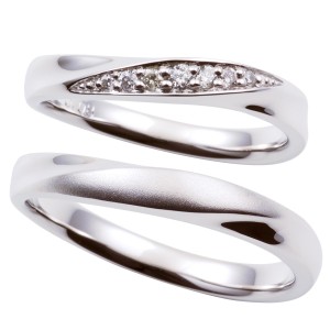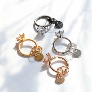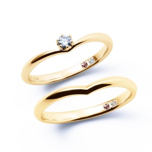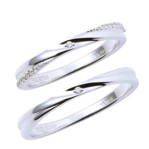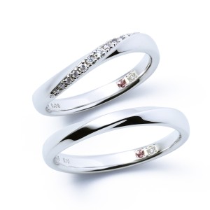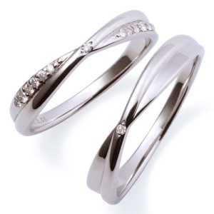 「交叉」系列中的配對,兩條線相交,表達兩人之間的相遇。中心鑲嵌一顆具有「永恆」意義的鑽石,祈願「兩人的愛情天長地久」。