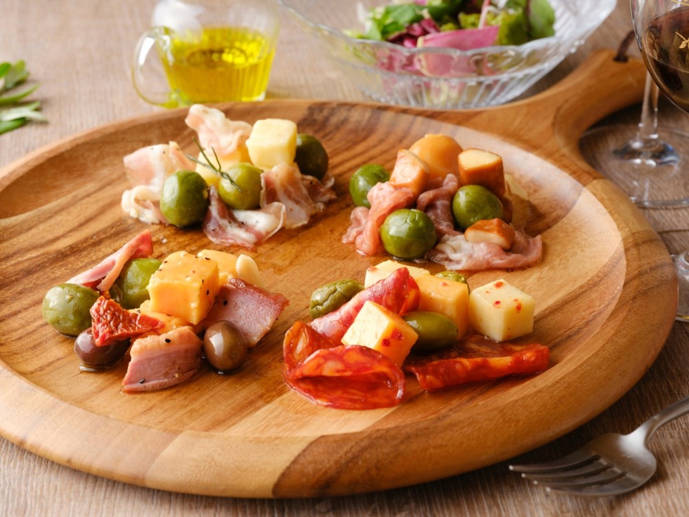 種類[帕切塔]:正宗油醃風味,簡單搭配紅酒就能享受高雅美食。[辣味薩拉米] 辣味薩拉米:拿坡里風格薩拉米,搭配兩種起司、橄欖,以紅辣椒油醃製,風味濃郁。[煙燻卡秋卡瓦洛起司&生火腿] :煙燻卡秋卡瓦洛起司、無亞硝酸鹽熟成生火腿,搭配切里尼奧拉橄欖,浸泡在橄欖油中,香氣十足。[煙燻鴨胸] :使用京都鴨胸煙燻後,搭配起司、風乾番茄與棕色橄欖,以香草油醃製,風味層次豐富。