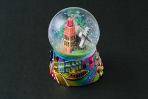 將豪斯登堡的三大標誌緊緊地合二為一的限量版雪花球。風車,馬房(教堂),德姆特倫高塔(塔)定期更換正面,玩得開心♪高度:約 9 cm